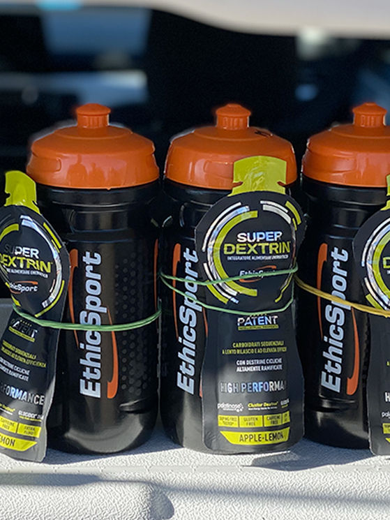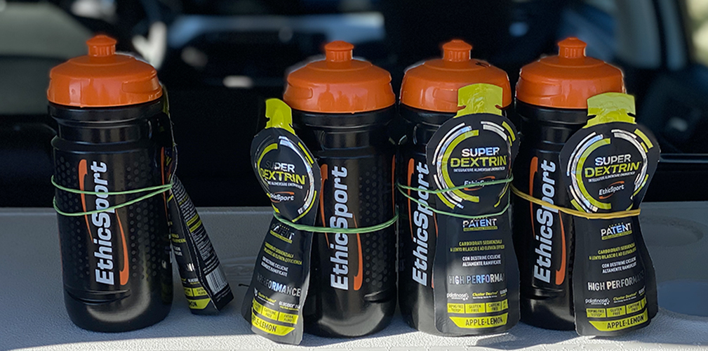 Gel a rapida assimilazione e la borraccia con maltodestrine, un binomio ampiamente sfruttato (foto Drone Hopper)