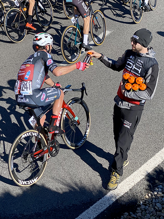 Un rifornimento per gli atleti del team italiano durante la Challenge de Mallorca (foto Drone Hopper)