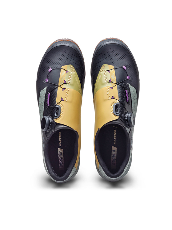 La suola in gomma SUPtraction offre un grip prestazionale, garantendo stabilità e controllo su qualsiasi terreno. La suola in carbonio composito assicura un’accelerazione efficace, mentre la soletta Solestar con supporto dell’arco plantare e l’inserto metatarsale migliora la trasmissione della potenza e l’efficienza.