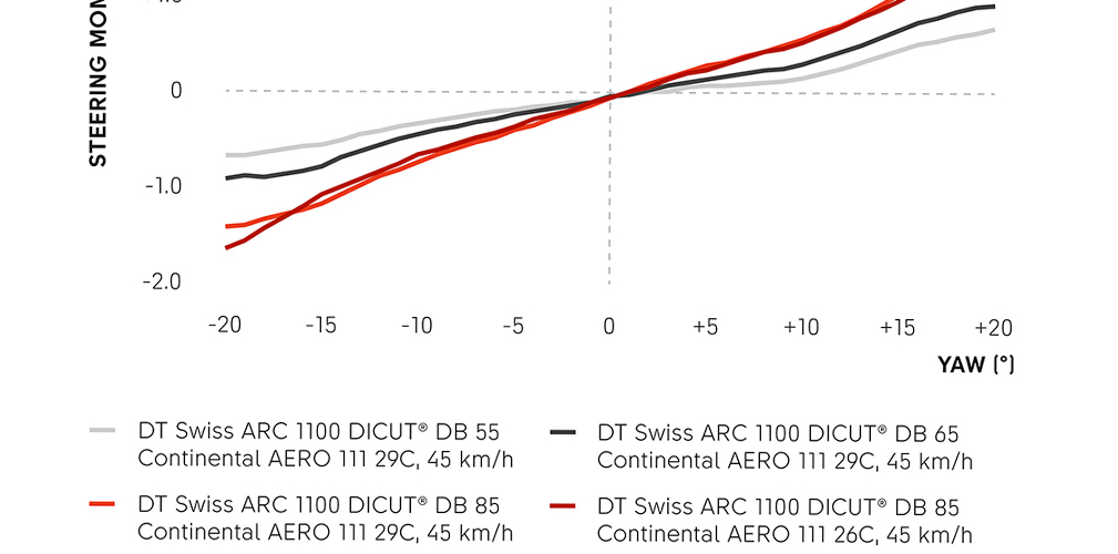 Con le 38 abbiamo percorso l’ascesa in 13 minuti e 11 secondi, alla velocità media di 22,3. Il peso della bici (pronta per il test, tutto incluso) è di 6,85 chilogrammi. Con le DT Swiss ARC da 55 millimetri abbiamo percorso la stessa salita con il medesimo tempo, medesima velocità media ed il peso rilevato della bici è di 7,05 chili (200 grammi in più delle ARC 38). Tra le due prove è cambiata leggermente (3 watt, ininfluente) la potenza normalizzata, che è stata maggiore durante l’utilizzo delle 55. Le ARC con il cerchio più alto perdono qualcosa èsui tratti più ripidi, ma sono nettamente più veloci quando la pendenza è in intorno al 5/7% e dove la strada permette di fare velocità.
