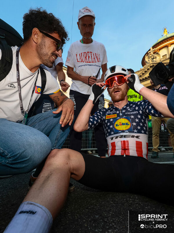 Il terzo gradino del podio è sfuggito di appena 25 secondi, ma Simmons ci è salito lo stesso per ricevere il premio Pier Luigi Todisco, per il primo corridore che transitava in vetta al Ghisallo, la salita preferita della compianta firma della Gazzetta dello Sport. «Io però speravo di salire sul vero podio dei primi tre. Sarà per la prossima volta», ha ribadito prima di infilarsi all’interno del bus.