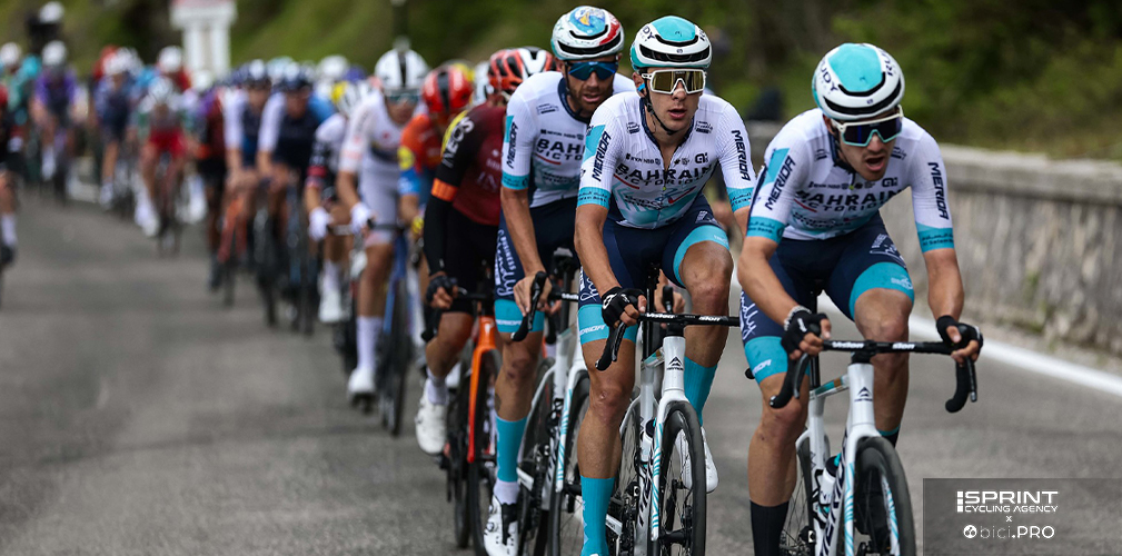 La Bahrain Victorious ha preso in mano la corsa poco prima dell’ultimo bivio verso Marsia, la località sciistica ormai dismessa che ha ospitato il traguardo della settima tappa del Giro d’Italia.