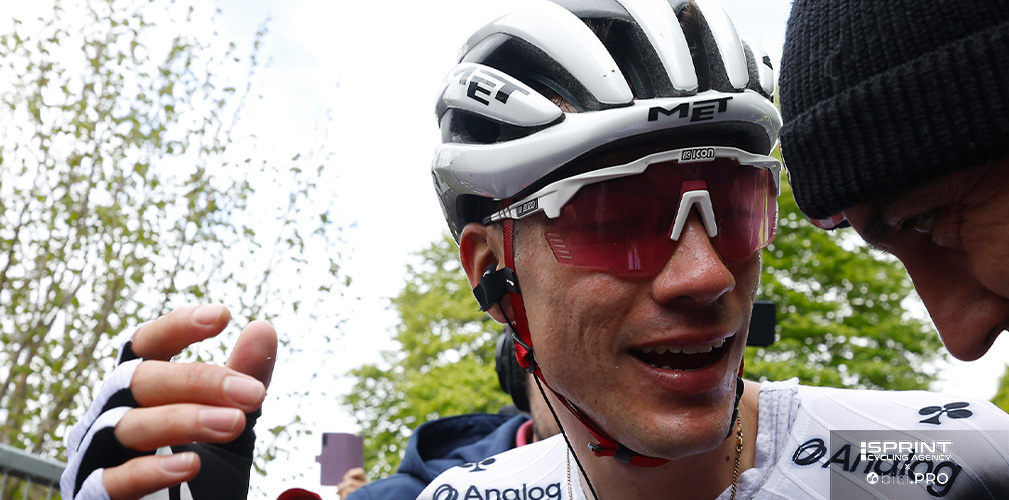 Appena arrivati questa mattina nel clan della Decathlon-AG2R a Castel di Sangro abbiamo notato subito 14 bici. Loro sono rimasti in sette: perché portarne così tante? Perché sette erano per la corsa e altre sette pronte sui rulli. La partenza infatti era in salita e l’intento della squadra francese era duplice: non far staccare Sam Bennett, il velocista e capitano, e mettere nella fuga Prodhomme. Il ragazzo è stato bravissimo centrando l’obiettivo.