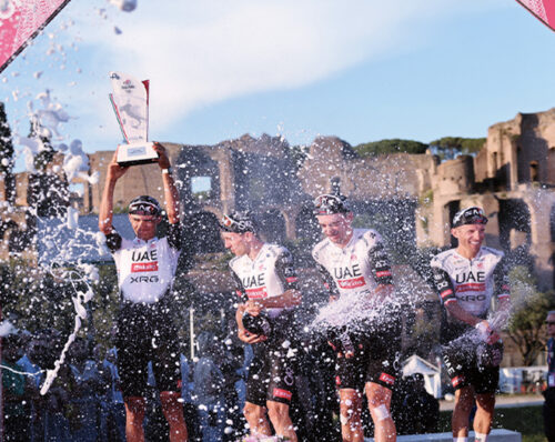 A questo punto, approfittando dell’interruzione di corrente, la maglia rosa se ne è andata, covando forse il sottile fastidio per non essere riuscito a vincere sull’arrivo che lo chiamava da giorni e su cui non è andato oltre un pur lodevolissimo quarto posto, alle spalle di Ayuso, Del Toro e Bernal.