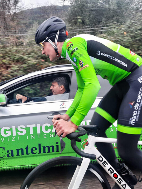 No, le ho comprate da De Rosa. Ho parlato con Cristiano e ci è venuto incontro con i pagamenti. Sempre grazie a qualche conoscenza, caschi e occhiali sono Salice e con l’aiuto di Moreno Nicoletti sono arrivate le scarpe Fizik. Il mio impegno nella quotidianità non può esserci, cerco di aiutare come posso nel reperire fondi e dare sempre il mio sostegno dove posso. Quest’anno ad esempio andiamo a fare anche la Liegi-Bastogne-Liegi.