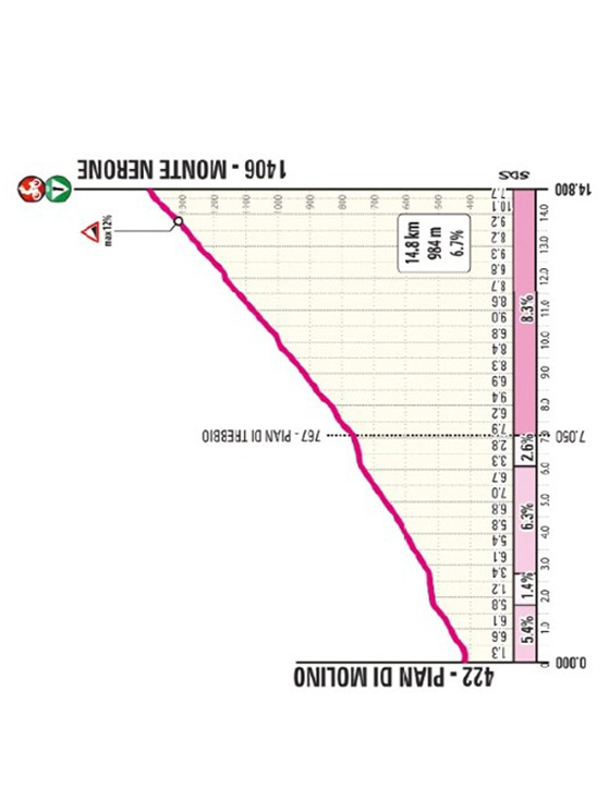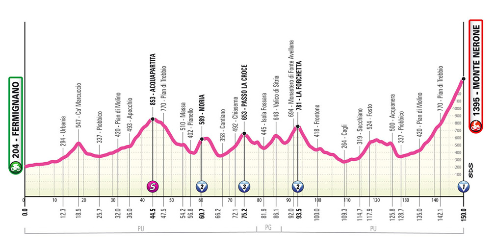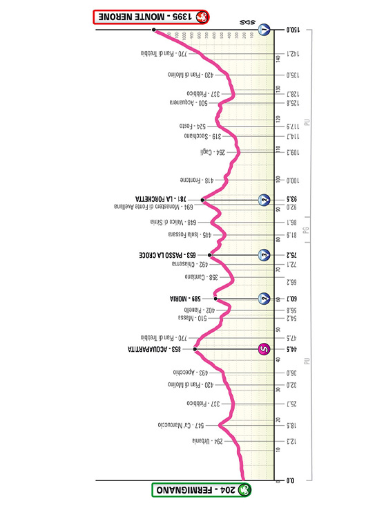 Il Monte Nerone era stato affrontato al Giro 2009 dal versante di Pianello. Salita dura, esposta al sole negli ultimi 8 chilometriIl primo a transitare sul “gpm” fu il laziale De Bonis della Androni in fuga col compagno Scarponi e altri atletiIl Monte Nerone era stato affrontato al Giro 2009 dal versante di Pianello. Salita dura, esposta al sole negli ultimi 8 chilometriIl primo a transitare sul “gpm” fu il laziale De Bonis della Androni in fuga col compagno Scarponi e altri atleti