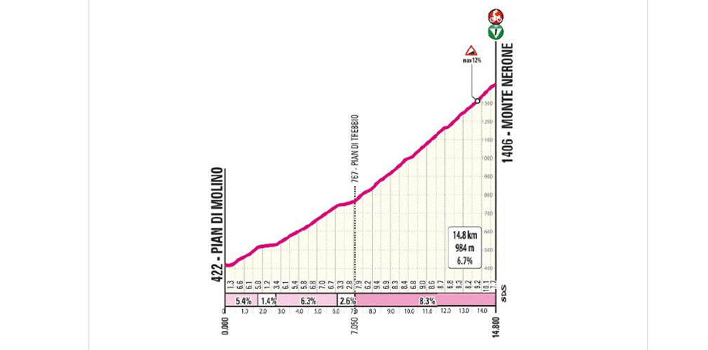 Dal giorno della presentazione del percorso ad oggi, addetti ai lavori e soprattutto atlete hanno individuato nella settima e penultima tappa che si conclude in vetta al Monte Nerone il punto cruciale del Giro Women. Questa montagna delle Marche (in provincia di Pesaro-Urbino e al confine con l’Umbria) in passato è stata affrontata soltanto una volta durante la 16a tappa del Giro d’Italia del 2009. Si saliva da Pianello, mentre quest’anno si scala il versante da Pian di Molino e Serravalle di Carda, ma non cambia lo sforzo che attenderà le ragazze in gara.