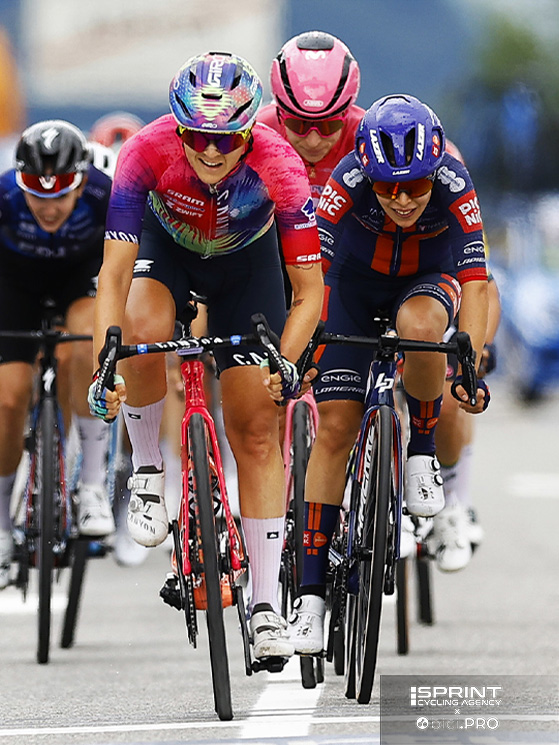 Il lavoro che mi sono ritrovata a fare quando sono entrata in questa squadra mi ha aperto gli occhi nella gestione degli sprint o delle gare che potevano finire in quel modo. Al netto delle difficoltà altimetriche del percorso, bisogna essere sempre brave a sapersi adattare al tipo di corsa che ci salta fuori. Quindi le compagne possono servire per ciò che dicevo prima oppure entrando in azione in un altro modo.