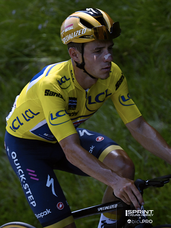 Nei trenta che hanno approcciato la salita finale era l’unico della Soudal-Quick Step. Ha lottato, ha provato a gestirsi, forse aveva anche qualche oggettivo impedimento per la caduta, però resta il fatto che alla fine anche Lipowitz lo ha ripreso e staccato.