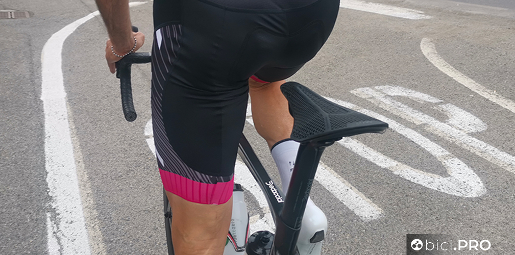 Al primo impatto (il riferimento è per chi non ha mai usato una sella corta) sembra di essere seduti “in punta di sella”, questo perché manca in pezzo nella parte anteriore e la sella diventa larga già nella sezione mediana. La realtà ci dice che i punti di appoggio fondamentali non cambiano e si può sfruttare maggiormente la posizione ribassata, senza ingombri.
