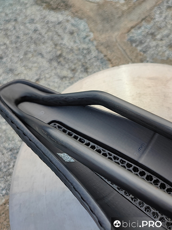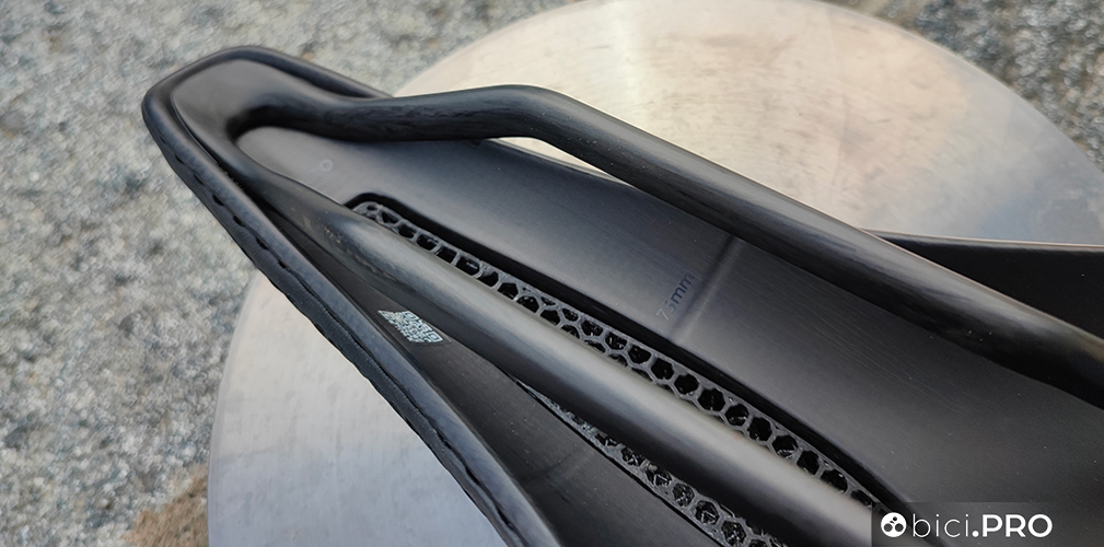 Stabilizzare prima di tutto, come una sorta di obiettivo primario, che è ottenuto grazie alla combinazione dello scafo in nylon/carbonio e del telaio che è una sorta di blocco unico: prende il nome di Mobius. La sua peculiarità principale, oltre alla qualità del materiale è la mezzaluna posteriore che unisce i due rails. Oltre a compattare si ottiene un importante effetto stabilizzante su tutta la sella che non risulta per nulla cedevole e non subisce “l’effetto ondeggiante” del corpo.