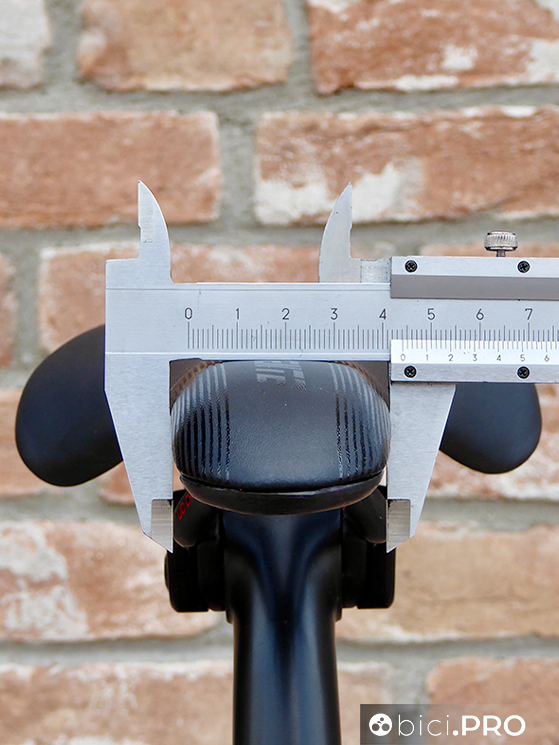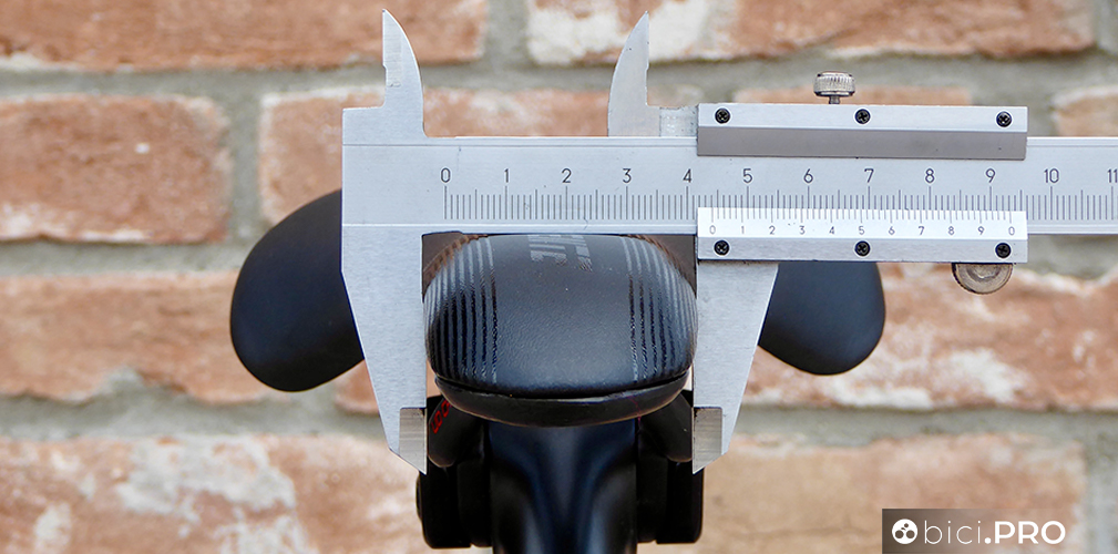 Il canale anatomico c’è ed è evidente, eppure è difficile inserire la Prime 3.0 nella categoria delle selle con il buco. Tutta la parte del naso è “piena”, con una lunghezza di 9,5 centimetri, imbottita il giusto e ben sostenuta grazie ad una EVA di ottima consistenza e con una larghezza di 4,4. Sembra più larga, invece è perfettamente in linea con le misure della categoria.