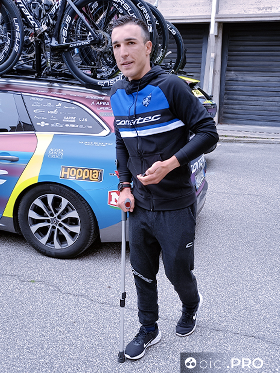 CESENA – Cos’è un ciclista. E’ Valerio Conti che con il bacino fratturato porta a termine una tappa. Qualche mattina fa, al via di una tappa, ecco che tra i mezzi della Corratec-Selle Italia vediamo un ragazzo con le stampelle. «Ma quello è Valerio Conti», ci diciamo.