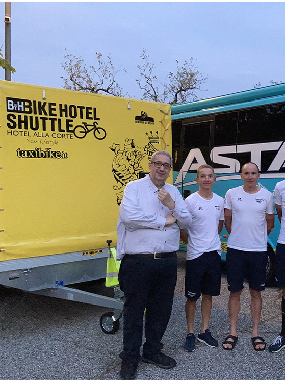 In questi ultimi anni posso ammettere con una punta d’orgoglio, concedetemelo, che abbiamo strutturato il Bike Hotel Alla Corte col massimo di servizi pensabili e possibili per i nostri ospiti ciclisti. Non a caso l’albergo è posizionato giusto lungo la ciclovia Monaco-Venezia, e moltissimi ciclisti di passaggio ci hanno anche aiutato a capire nello specifico molte delle loro esigenze. In albergo abbiamo sempre attiva una Bike Clinic (officina), una specifica stazione di gonfiaggio, un dispenser di prodotti di consumo come camere d’aria e integratori energetici. Disponibile anche un servizio di Bike Taxi per imprevisti meccanici che si dovessero verificare nel corso di una uscita, quanto un’attrezzata stazione di ricarica rapida per le biciclette elettriche ed un servizio di lavanderia realmente express.