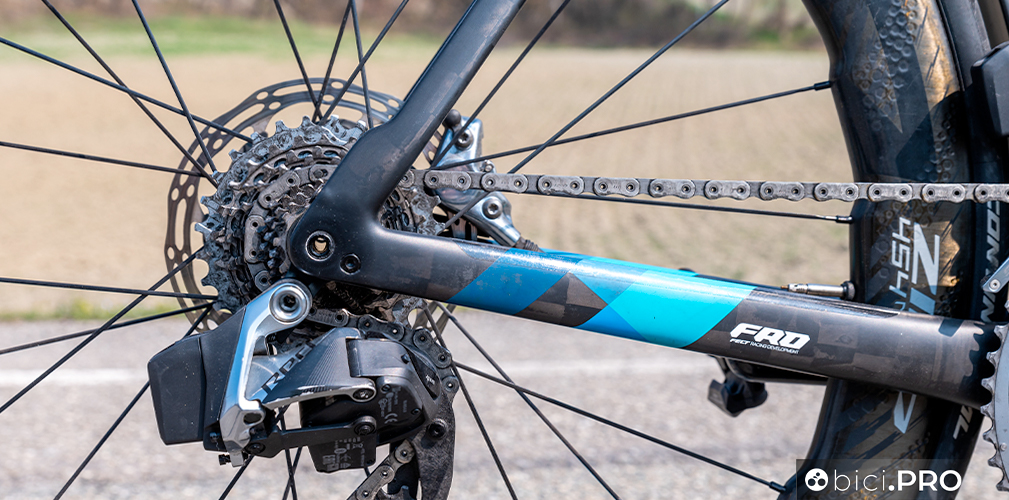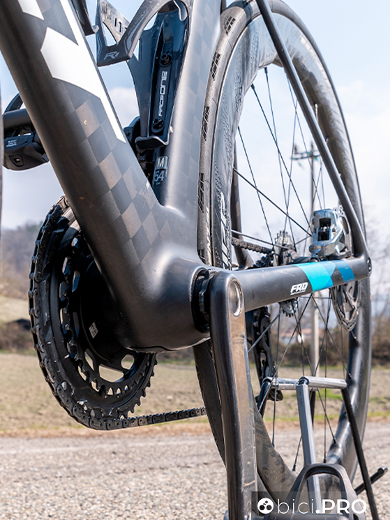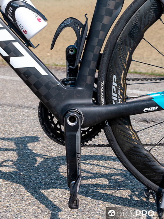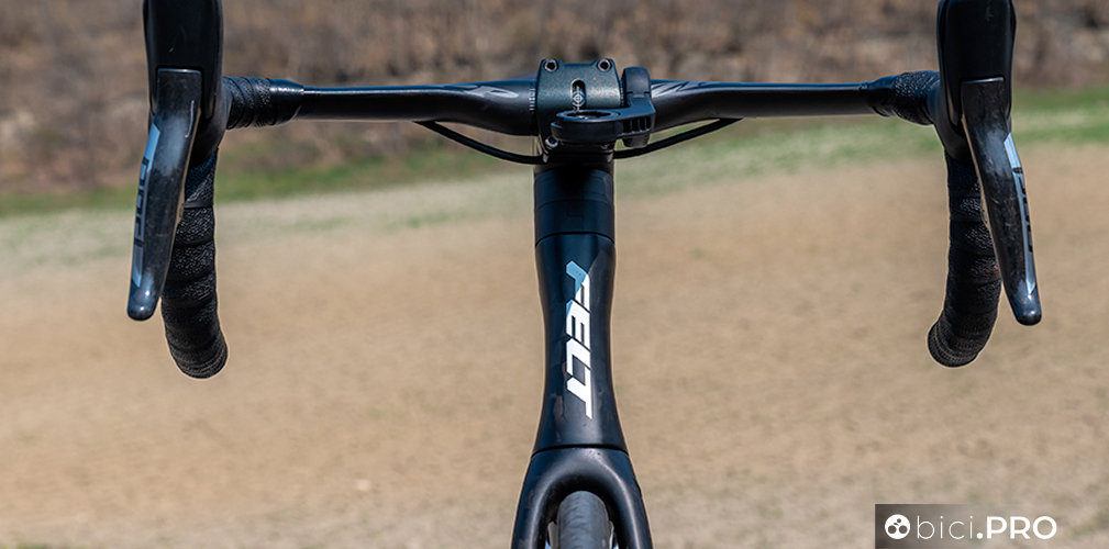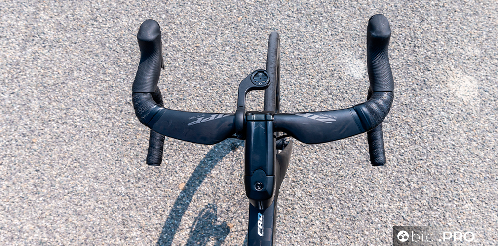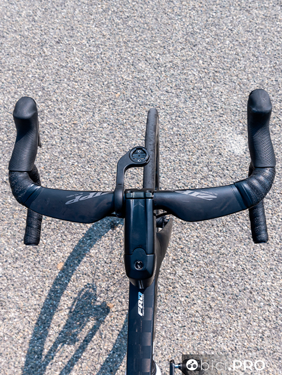 Abbiamo scelto quest’ordine perché l’adozione di un cockpit integrato porta dei vantaggi minimi, rispetto alla possibilità di adottare lo stem della lunghezza corretta per la propria posizione. Poter sfruttare una posizione in sella migliore, più aerodinamica ed efficiente, comporta un vantaggio aerodinamico complessivo maggiore. Inoltre, lo stem proprietario della AR FRD offre valori di rigidità che sono un riferimento per la categoria.
