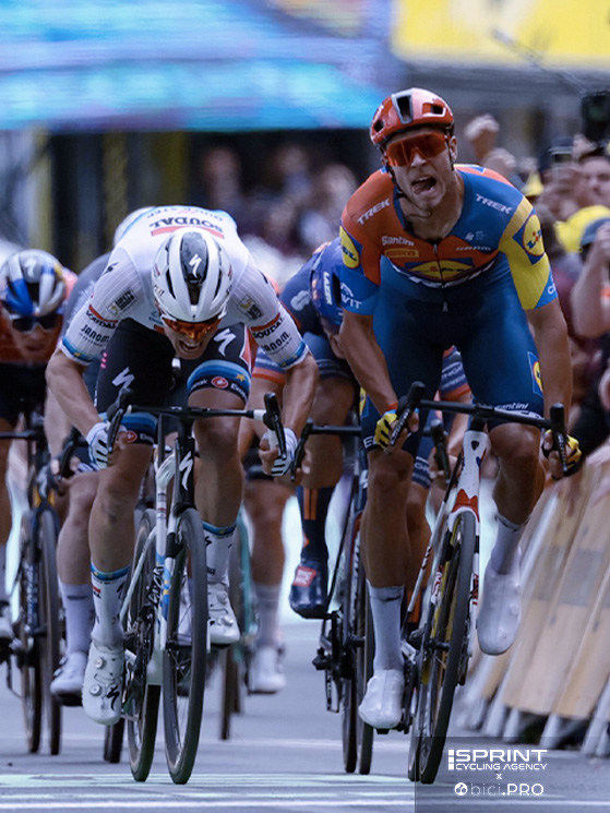 Pochissimi dettagli, ha dimostrato di avere potenza e forza a volontà. Forse, se devo trovare qualcosa, una posizione più aerodinamica in volata. Se si guarda a uno sprinter come Philipsen, si vede tanta differenza, lui è molto più schiacciato sulla bici rispetto a Magnier. Anche se una volta lo ha battuto, alla Elfstedenronde Brugge a giugno. Quindi penso sia proprio una questione di abitudine.