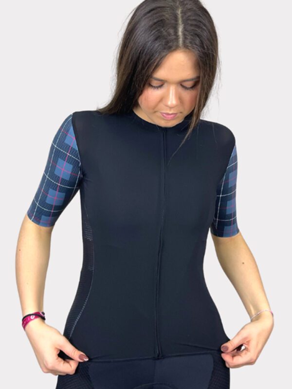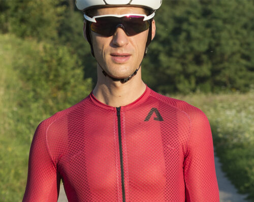 Il tessuto principale è un mix tecnico a rapida asciugatura, con una lavorazione che consente una buona traspirazione nelle giornate calde e mantiene stabile la temperatura corporea durante gli sforzi più intensi. La zip anteriore a tutta lunghezza è leggera e quasi impercettibile, mentre le cuciture piatte evitano qualsiasi frizione sulla pelle.