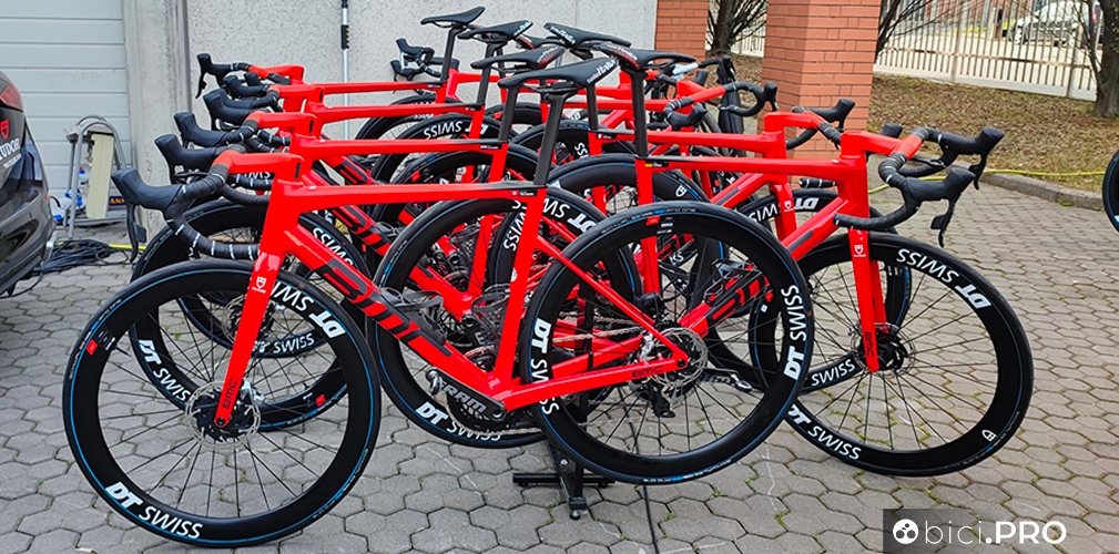 Il modello utilizzato dai corridori è il Teammachine SLR-01, mentre il vincitore della Milano-Torino è il solo ad utilizzare la aero Timemachine. Per tutti i corridori il pacchetto include anche il manubrio integrato full carbon BMC, che grazie al suo design, più stretto sopra e con un flare che apre la curvatura, permette di coprire diverse esigenze e richieste degli atleti.