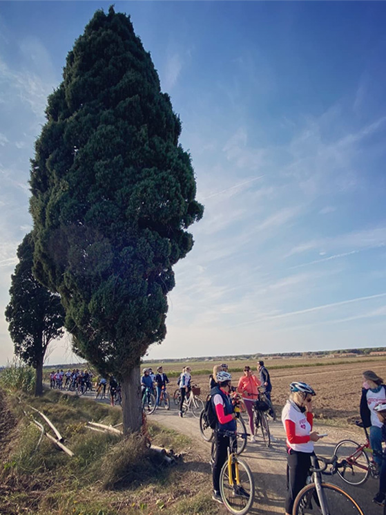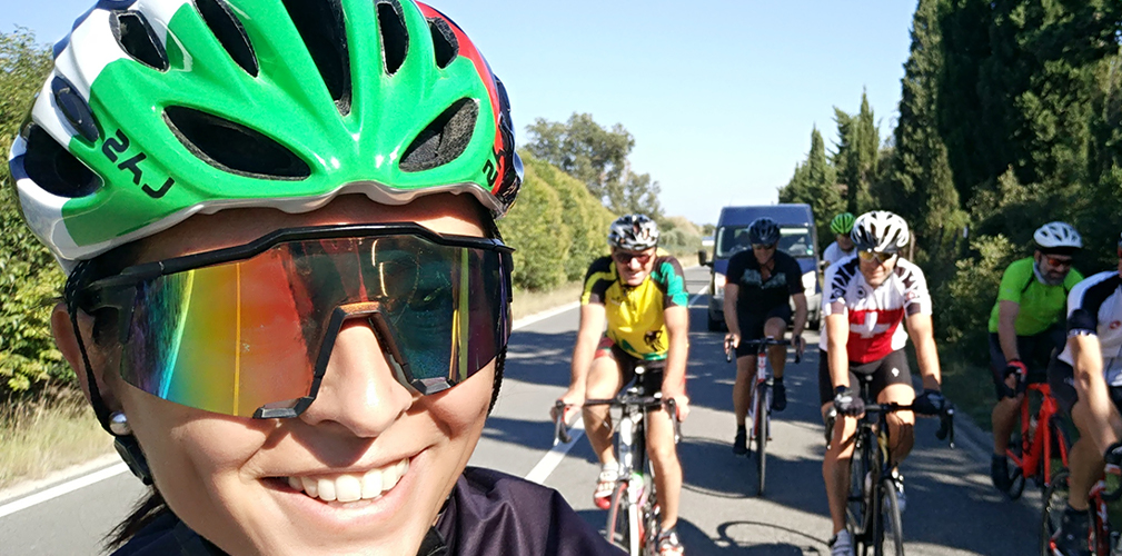 A livello di legislazione, non siamo autorizzati a dare informazioni turistiche o artistiche. A quello pensano le guide ambientali, con cui collaboro e che incontro quando porto un mio gruppo in un determinato posto nel quale servono le loro spiegazioni. Su questo servirebbe una maggiore uniformità dando anche a noi l’abilitazione a dare le informazioni turistiche. Certo, durante la pedalata ci può stare che io ne dia, ma in realtà mi limito sempre a raccontare aneddoti legati alle mie precedenti uscite. Oppure legati alla mia carriera, alle ex compagne o alle gare della zona.