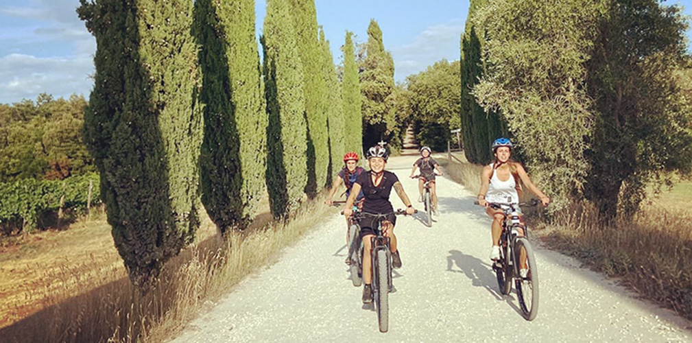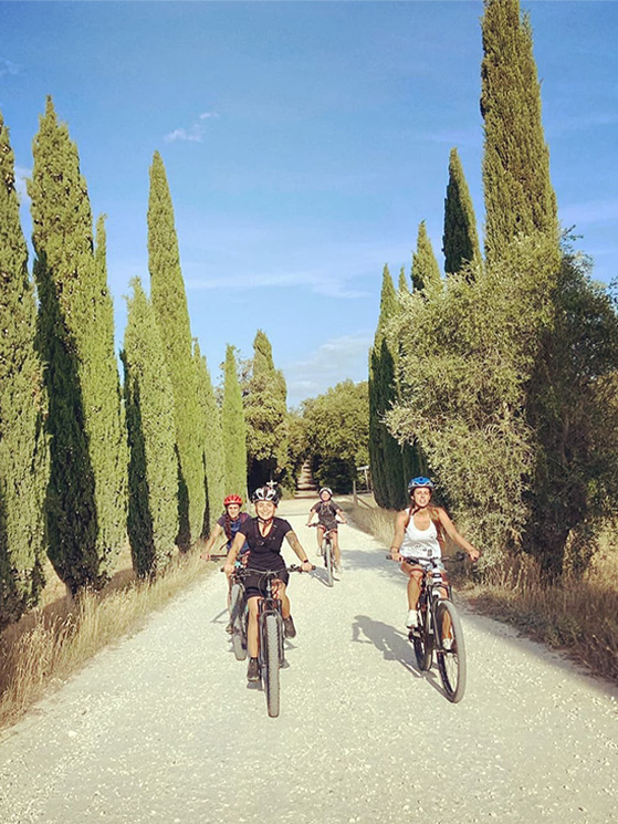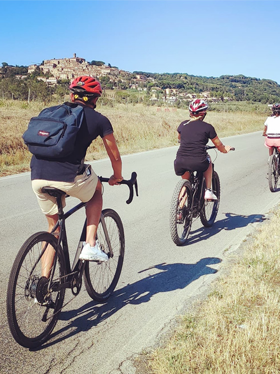 No, ma ci appoggiamo a negozianti di fiducia della zona. Lì si possono affittare le bici normali, da corsa ed anche le e-bike. Ora ci stiamo attrezzando anche con le gravel perché sono molto richieste. E’ la moda del momento, ma sono perfette per le nostre strade bianche. Con quelle si respira la vera essenza toscana.
