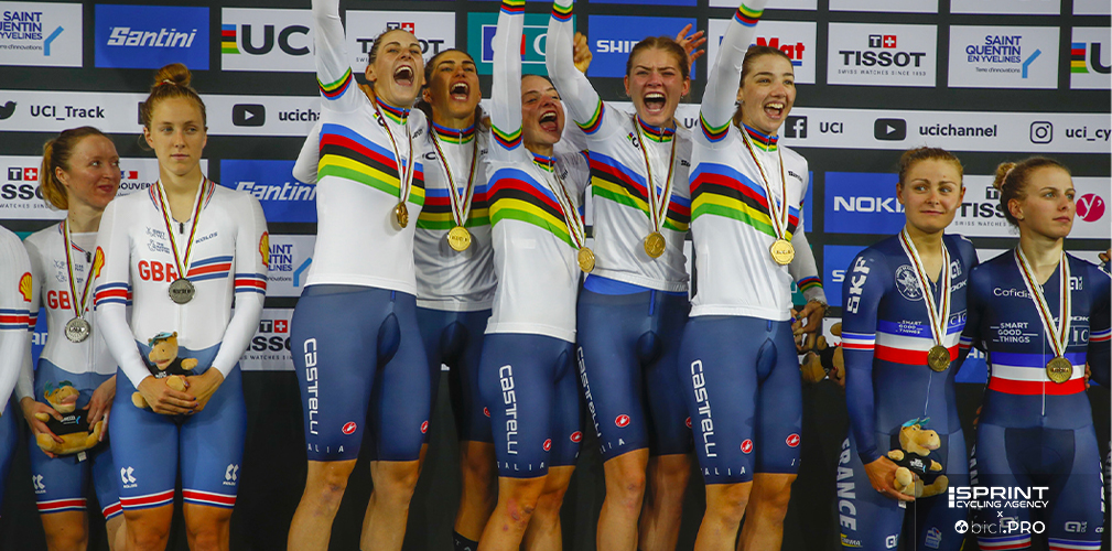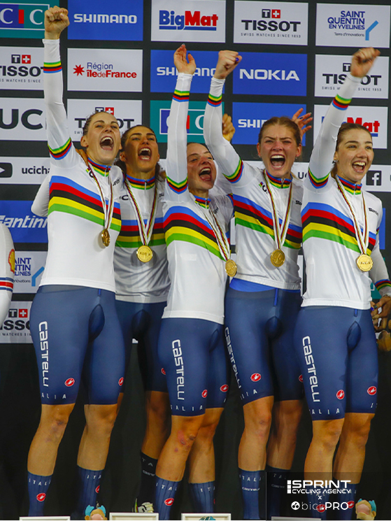 A livello personale non sono stata una gran vincente, i miei più grandi risultati li ho tenuti in pista, a partire dai due titoli europei consecutivi nella corsa a punti. Poi però ho avuto la fortuna di partecipare a tutte le più grandi gare e negli ultimi anni ad essere di supporto alle mie compagne. Penso che il giorno più bello in assoluto sia stato quando Elisa Balsamo ha vinto il titolo mondiale. In quella che è stata una giornata perfetta. E’ vero che sul podio non c’ero io, ma quel titolo l’ho sentito anche mio. L’esempio di quando la tua compagna vince perché tu lavori per qualcosa e contribuisci.