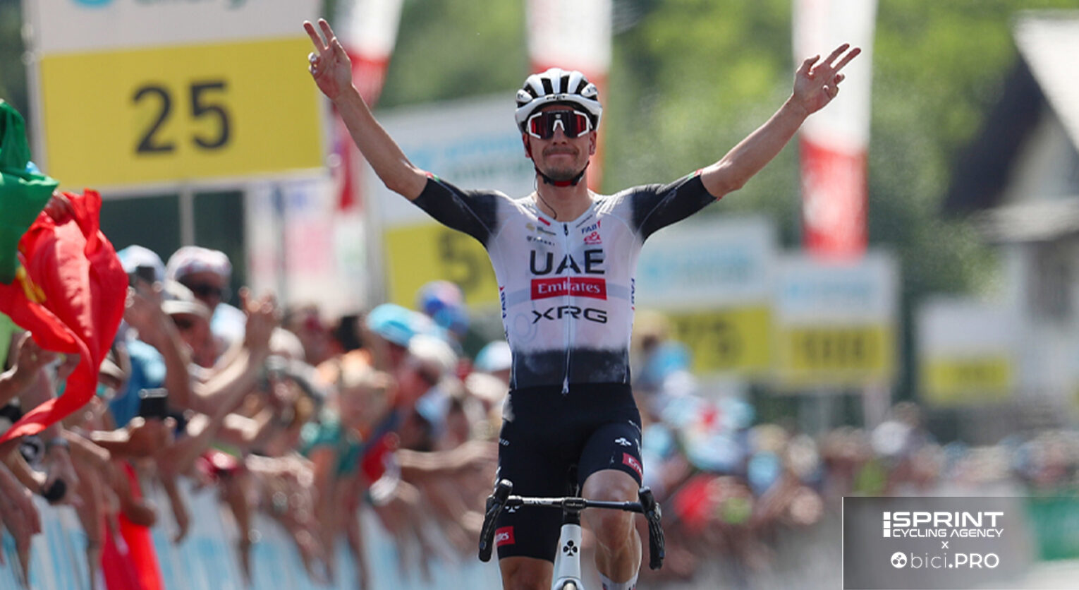 Il portoghese del UAE Team Emirates-XRG ha lo sguardo fisso sulla ruota posteriore abbandonata qualche metro accanto a lui, intanto gira le gambe. Pensa e riflette. Oggi a Piuro in Valchiavenna, dove il Tour de Suisse è tornato dopo 27 anni, ha vinto la sua quinta gara stagionale: una tappa alla Parigi-Nizza, due ai Paesi Baschi e la classifica generale sia in Spagna che al Tour de Romandie.