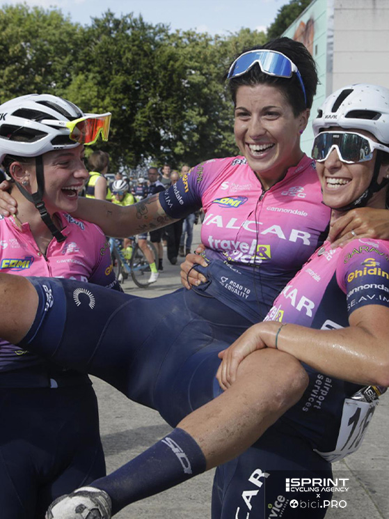 C’era una volta la Valcar-Travel&Service, squadra continental italiana, voluta, creata e plasmata dalla competenza e la passione di Valentino Villa e Davide “Capo” Arzeni. Oggi le sue atlete migliori sono sparpagliate fra la Lidl-Trek, la Uae Team Adq, la FDJ-Suez e la Cofidis. Se ne parlava giusto qualche giorno fa con Roberto Amadio, individuando in essa l’esempio migliore di una squadra italiana, capace di valorizzare alcune fra le migliori atlete, lavorando in stretta collaborazione con la FCI.