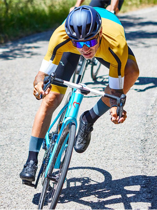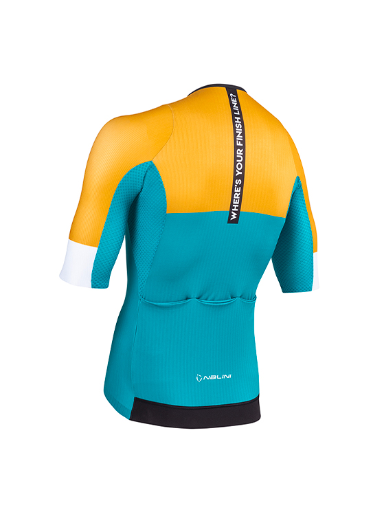 Dalla linea top di gamma ERGO LINE, rivolta a chi ama la velocità e le prestazioni e vuole vestirsi con un abbigliamento second skin c’è la Veloce Jersey. Una maglia aerodinamica con tessuto rigato su spalle e pannello frontale, dalla mano particolarmente morbida. Sulla schiena è stato utilizzato un tessuto super leggero che mantiene il ciclista fresco e asciutto durante le giornate più calde e le salite più impegnative. Il fondo manica è realizzato con taglio al vivo per una migliore sensazione sulla pelle.