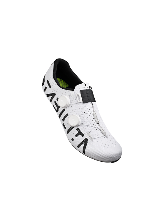 La suola, invece, è in fibra di carbonio, un materiale che permette di avere grande leggerezza e rigidità. Quest’ultima si attesta ad un indice di 10, che la rende la più rigida della gamma Fizik. La suola della Vento Stabilita ha un’ampia presa d’aria nella parte inferiore e un sistema di canalizzazione che disperde comodamente il calore.