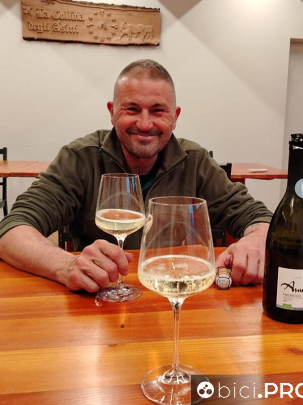 Anche perché tra vigna, animali, agriturismo il tempo per pedalare è oggettivamente poco. Ci sediamo e apre una bottiglia di Amets, il Prosecco che produce. Iniziamo chiedendogli come va il lavoro agricolo in questo periodo dell’anno.