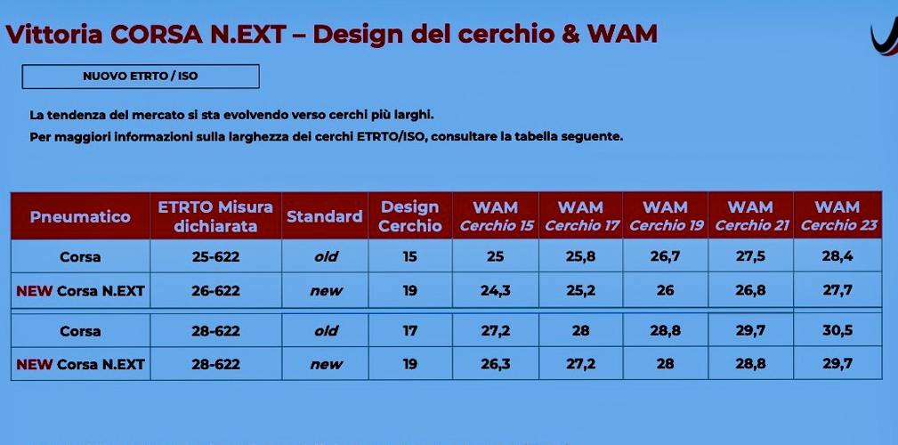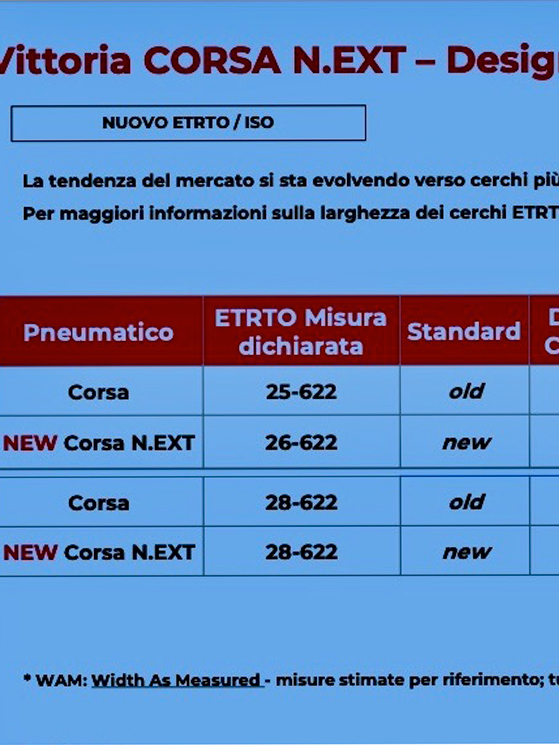 Lo shape di N.EXT e lo sviluppo delle sezioni, tiene conto anche di un aumento delle larghezze dei cerchi e della combinazione/compatibilità proprio tra pneumatico e ruota. Oggi troviamo numerose tipologie di ruote in commercio, con una larghezza del canale interno che varia tra i 15 e i 23 millimetri (con l’ingresso delle ruote hookless si aumenterà ulteriormente la larghezza). La combinazione tra la larghezza della gomma e il canale interno del cerchio diventa fondamentale ai fini di sfruttare lo pneumatico al massimo delle sue potenzialità. Una gomma con un valore WAM (width as measured) ottimale è più performante.