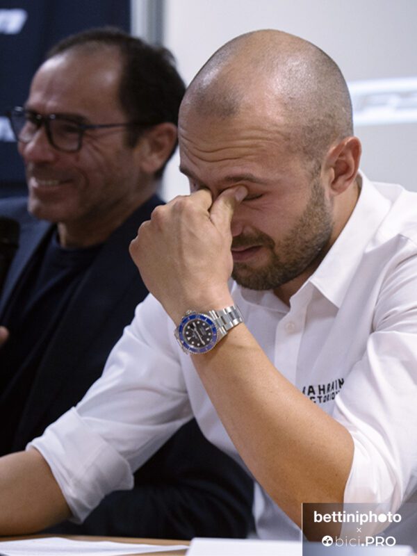 «Abbiamo fatto una chiacchierata – dice – prima di venire davanti a voi. Mi ha detto di non aver ancora metabolizzato quest’idea. Ha raggiunto tanto nella sua carriera e ora ha voluto questo incontro. Da tanto tempo non parlava. E’ una persona che ha seminato tanto e bene. E adesso – voltandosi verso Colbrelli – se hai finito di piangere, tocca di nuovo a te…».