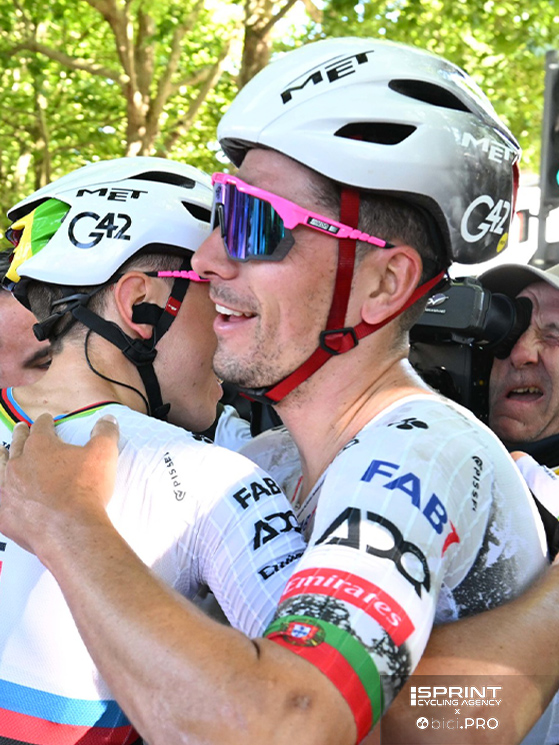«Ero al limite – dice il campione del mondo – ho provato con un allungo sull’ultima salita e Jonas mi ha seguito. Poi alla fine ci siamo ricompattati. Mi hanno attaccato, c’è voluto un lavoro straordinario per controllare tutti, quindi sono super felice e orgoglioso della squadra. Sono senza parole, è stata una vittoria così bella. Vincere al Tour è incredibile, con questa maglia ancora di più. E avere messo insieme 100 vittorie è pazzesco. Questo è il tipo di ciclismo che mi piace, semplicemente perfetto. Con tanti corridori forti in finale, sei sempre un po’ al limite e nervoso per quello che succederà. Non si sa mai come finirà, per cui hai addosso un’adrenalina incredibile. Perciò ora mi godrò la vittoria in maglia iridata e poi penseremo alla crono di domani, in cui ovviamente puntiamo alla maglia gialla».