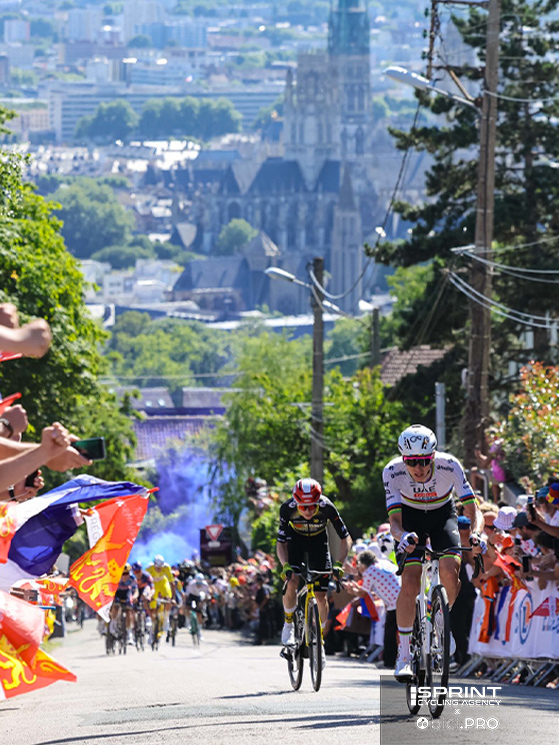 Rouen finisce di colpo tutta in basso quando Tadej Pogacar accelera sulla Rampe Saint-Hilaire. Vingegaard lo tiene, poi si siede e lo perde. E a quel punto o l’altro molla o il danese ha una botta d’orgoglio e gli torna sotto allo scollinamento. E’ l’antipasto per la centesima vittoria da professionista del campione del mondo.