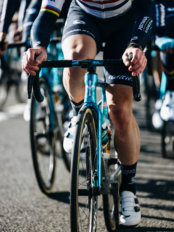 Si nota la nuova livrea “marmorizzata” delle nuove Wilier (foto Team Astana-Wilier)Si nota la nuova livrea “marmorizzata” delle nuove Wilier (foto Team Astana-Wilier)