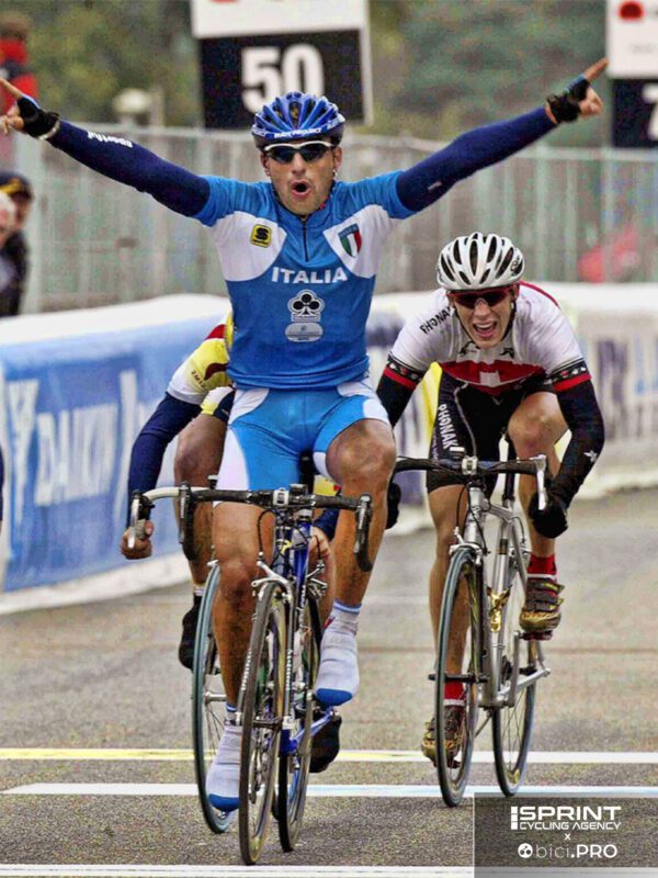 Nell’ultimo giro ognuno dei miei compagni cercò di tirare acqua al proprio mulino, Antonio (Bucciero, ndr) scattò sull’ultimo strappo per anticipare tutti. Io ebbi la fortuna di rimanere a ruota, battezzai le ruote di Dekkers e Baumann, i due più rapidi. Nella curva a “esse” vidi lo spazio per inserirmi più avanti, ci fu una caduta dove loro due furono coinvolti. Rimasi in piedi quasi per il rotto della cuffia e lanciai lo sprint venendo fuori da dietro a tutta.