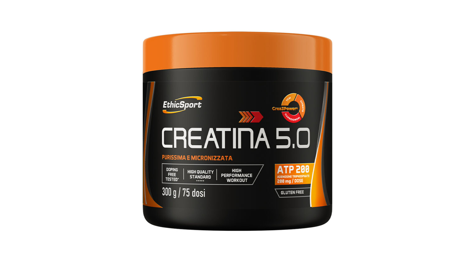 Tra i moltissimi integratori dell’azienda italiana EthicSport un posto particolare ce l’ha sicuramente Creatina 5.0. Si tratta di un prodotto a base di diversi tipi di creatina (ma non solo), una molecola naturale nota per migliorare le prestazioni fisiche in sforzi brevi e intensi.