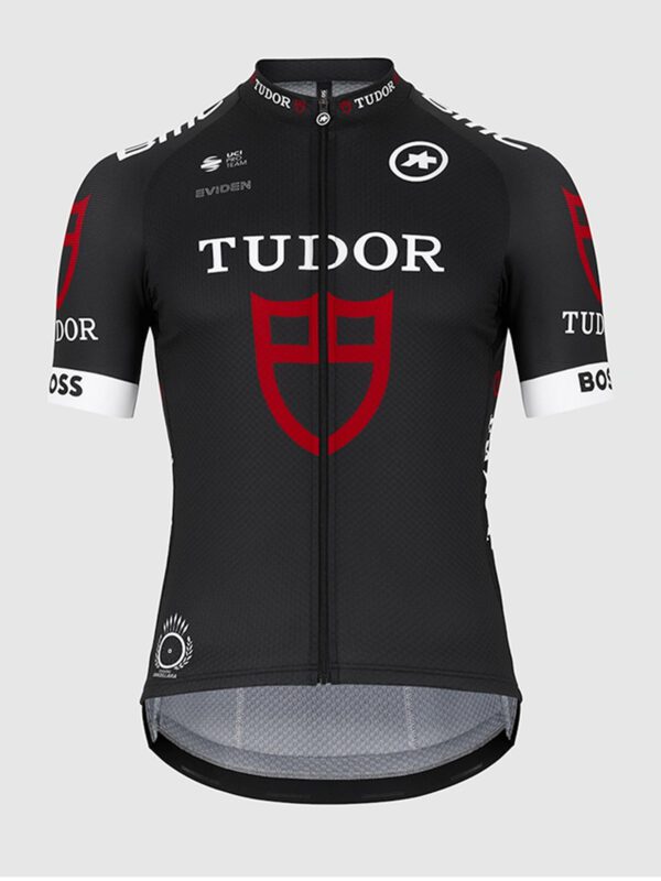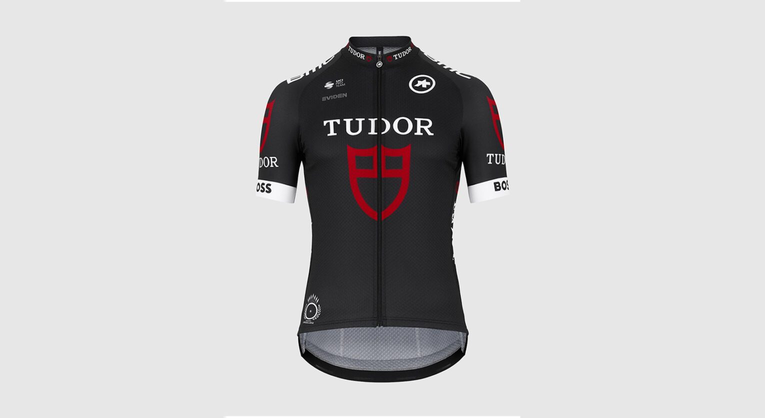 In qualità di fornitore ufficiale di abbigliamento del Tudor Pro Cycling Team, Assos ha creato una maglia replica che combina le grafiche di gara ufficiali della squadra con il noto e apprezzato modello GT da resistenza. I colori sono quelli appunto del team con il nero che campeggia accompagnato da particolari bianchi e dal logo rifinito con un elegante rosso