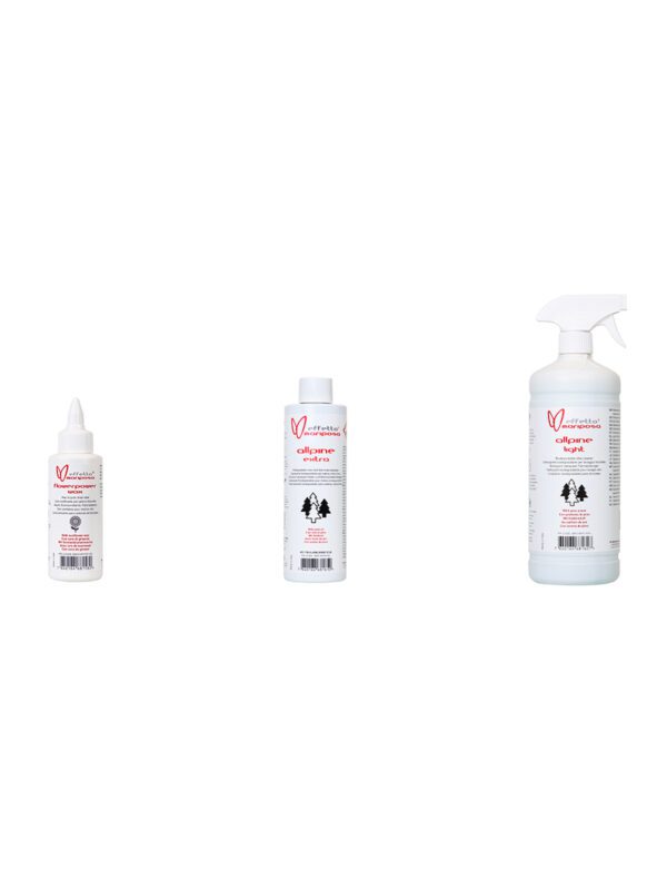 Flowerpower Wax utilizza ingredienti naturali per avere prestazioni ed affidabilità, tutto questo evitando composti fluorurati (PFAS), grafene e solfuri. Allpine Extra è un potente sgrassante con l’aggiunta di olio di pino, un solvente di origine naturale, prezioso per queste finalità. Infine Allpine Light, un detergente biodegradabile adatto a tutti i telai, che grazie alla sua formula è molto efficace contro lo sporco, non necessita risciacquo, e risulta ideale anche per le e-bike.