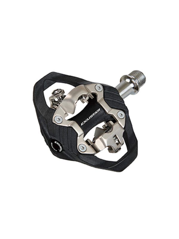 Questi E-PM242 sono dotati della nuova generazione di attacchi Exustar per tacchette. Il loro vantaggio immediato è sicuramente la facilità di inserimento. La piattaforma di dimensioni moderate offre un’area di contatto scarpa-pedale maggiore rispetto alla maggior parte dei pedali clip-in da MTB, garantendo stabilità e potenza.