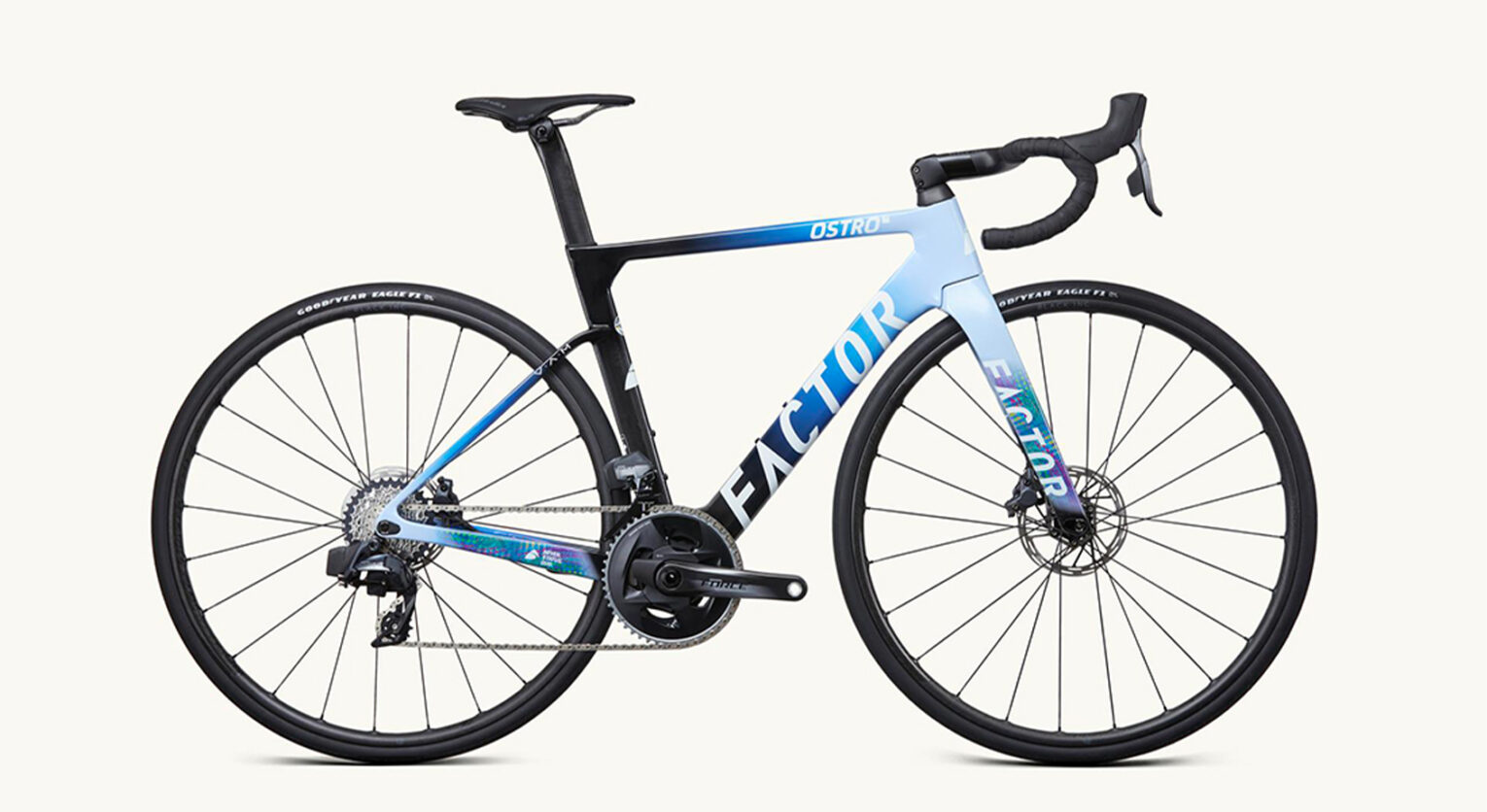 La bici è la top di gamma di Factor e si presenta con i colori utilizzati nella campagna benefica. Oltre al colorama classico della squadra, la forcella e il carro posteriore della Ostro presentano le fantasie scelte per rappresentare “Field of Dreams”. Un modo alternativo per comunicare l’impegno del team per il sociale e per i paesi in via di sviluppo che si stanno avvicinando al mondo delle due ruote come il Rwanda.