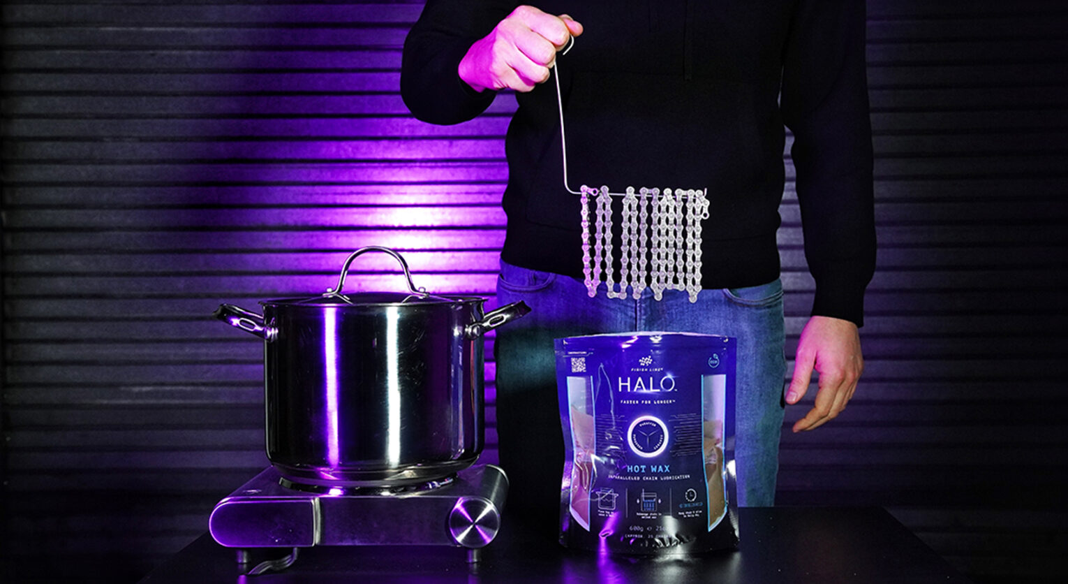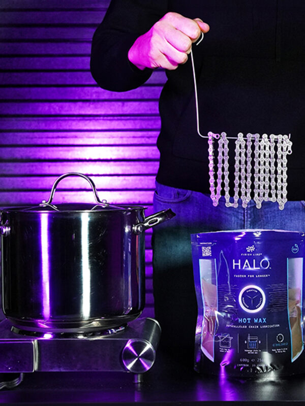 Il primo dei tre prodotti che approfondiamo è anche il più completo, HALO HOT WAX. Si tratta di un sacchetto che contiene 600 grammi di una miscela di cera di paraffina altamente raffinata, tungsteno sferico e piastrine ceramiche. Questo mix di ingredienti di altissima qualità migliora le prestazioni della trasmissione, riducendo l’attrito e l’usura causati dall’abrasione. Inoltre resiste all’acqua e difende la catena dallo sporco.