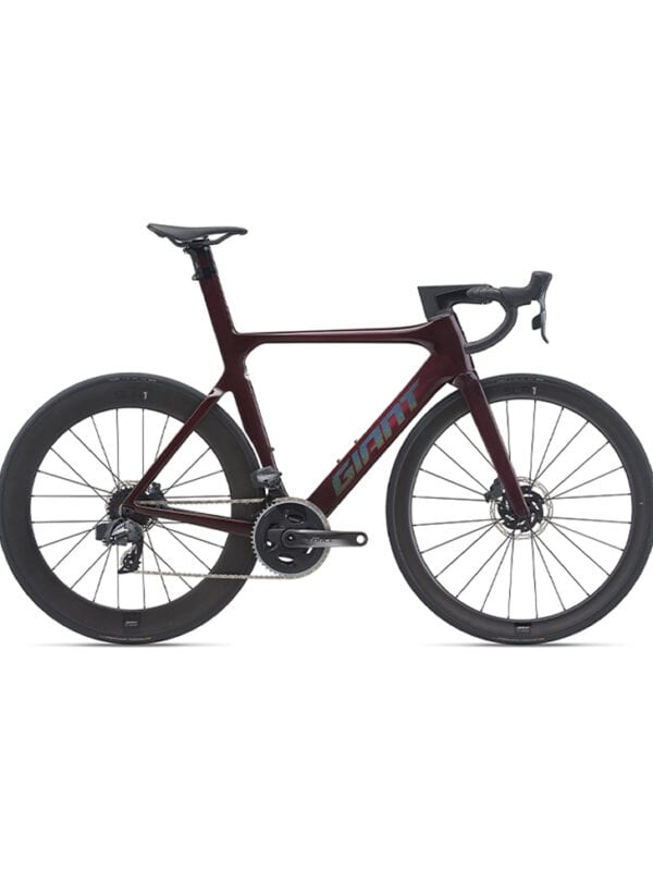 La Giant Propel cattura immediatamente l’attenzione per la forma del telaio, realizzato ricorrendo alle più elevate tecnologie della casa taiwanese, che appare solido e aerodinamico. Infatti la bici è stata progettata meticolosamente per riuscire a esaltare le prestazioni, nelle situazioni in cui c’è una particolare resistenza da parte del vento frontale e laterale. Il telaio è realizzato con fibre di carbonio di alta qualità che conferiscono alla bici caratteristiche interessanti in termini di rigidità e leggerezza. Osservandola bene ci si rende conto che i raccordi fra i segmenti che compongono il telaio sono stati sagomati per ridurre al minimo le turbolenze create dagli angoli vivi e rendono anche più avvincente l’estetica della Propel 2021. Il tubo piantone è sagomato e riduce la sua sezione nella parte inferiore che si congiunge al movimento centrale per accorciare ulteriormente il carro. In questa configurazione la Propel 2021 è presentata con ruote Giant SLR 1 Carbon, con un profilo di 42 mm per l’anteriore e 65 mm per quella posteriore, entrambe con perno passante che migliora la rigidità della bici.