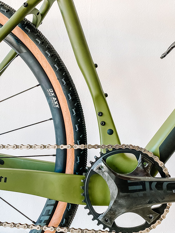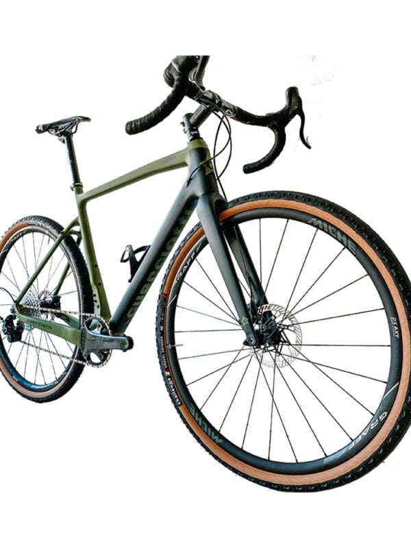 Non poteva certamente mancare il contributo di Guerciotti al gravel, soprattutto nel top di gamma. Il telaio Brera, prodotto dai maghi del ciclocross, si va infatti ad aggiungersi al modello Greto. E’ realizzato con fibre di carbonio ad alto modulo e pesa 1,270 chili. In carbonio monoscocca è anche la forcella. Fra le particolarità che saltano agli occhi, la sagomatura dei foderi orizzontali e del piantone che, avviandosi verso la scatola del movimento centrale, cambiano forma e sezione. Il piantone si schiaccia e anche se questa bici è montata con il monocorona, c’è la possibilità di utilizzare anche un deragliatore. Il carro posteriore invece ha foderi orizzontali schiacciati e rigidi, mentre un ponticello di rinforzo in alto rende più compatta la struttura. La bici ha i freni a disco con pinze flat mount e non si pone limiti, pronta a sfidare qualsiasi terreno.