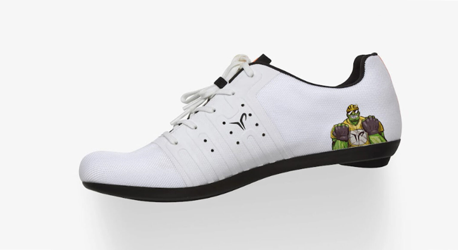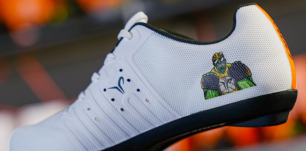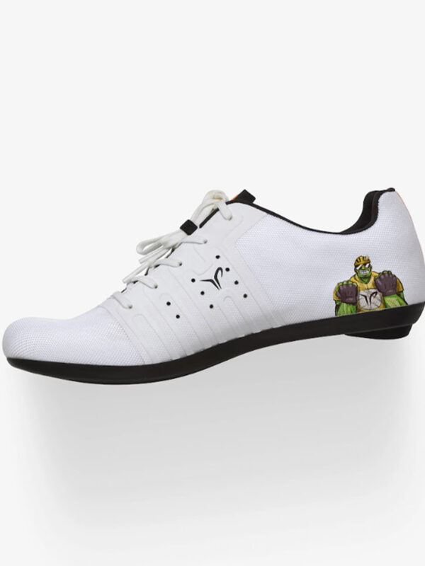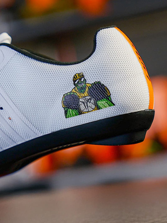 Sappiamo che Pogacar ama attaccare sul manubrio uno sticker di Hulk, il suo supereroe preferito. Essendo le KR4 PJ Junior delle scarpe pensate per i ragazzini, in Dmt hanno deciso di ispirarsi a quel personaggio per rendere questo modello unico.