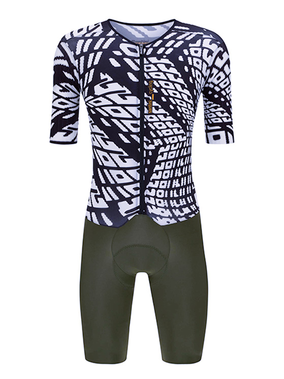 E’ il capo di punta della linea ed esprime il massimo in termini di resa aerodinamica per i ciclisti più evoluti. La parte superiore, in Lycra leggera e traspirante, mantiene una sensazione costante di freschezza, mentre il taglio aderente e il colletto basso assicurano un profilo efficiente contro il vento. Le maniche, realizzate in tessuto a navetta con motivo a righe, stabilizzano la vestibilità e ottimizzano il flusso d’aria grazie all’effetto vortice.