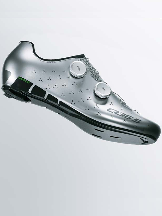 Q36.5 ha creato una versione speciale delle sue scarpe Unique, testate ed approvate da Daniele Bennati. La versione proposta per le scarpe Unique è una brillante ed affascinante Silver Edition. Un modello che viene sviluppato partendo dai dati ottenuti dal ciclista, poi realizzata artigianalmente per non lasciare nulla al caso.