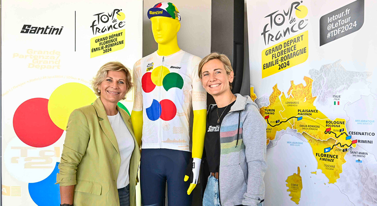 Per celebrare l’attesissima partenza del Tour de France 2024 in Italia, Santini ha creato un completo che unisce i colori francesi a quelli della bandiera italiana. In occasione delle prime tre tappe (Firenze-Rimini, 28 giugno; Cesenatico-Bologna, 30 giugno; Piacenza–Torino, 1 luglio), l’azienda bergamasca ha disegnato il kit Grand Départ che racconta la vicinanza tra Francia e Italia: due Paesi uniti per l’avvio della Grand Boucle. In apertura, Paola e Monica Santini in occasione della presentazione avvenuta in concomitanza della conferenza stampa organizzata dalla Regione Emilia Romagna durante l’Italian Bike Festival a Misano Adriatico.