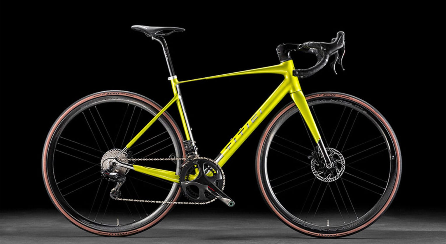La bici è realizzata in fibra di carbonio, prodotta artigianalmente con il sistema PBW (Progressive Bandage Workmanship). Equipaggiata con Campagnolo Super Record elettronico e ruote Campagnolo Bora WTO 45 Disc.