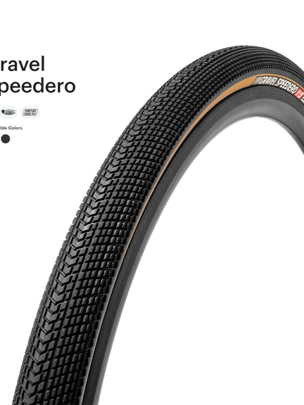 Tufo prende le misure con il gravel introducendo uno specifico copertone tubeless chiamato Speedero. Parliamo di una copertura estremamente versatile. Quest’ultima è pensata proprio per chi ama viaggiare sullo sterrato e e più in generale divertirsi in bicicletta: e proprio in virtù di queste proprie attitudini, i pneumatici Tufo Speedero non si pongono alcun limite… dichiarandosi perfettamente pronti a sfidare qualsiasi tipologia di terreno. Ma veniamo ad analizzarne le caratteristiche principali. Nella parte centrale del battistrada hanno da subito attratto la nostra attenzione i tasselli ravvicinati. Essi rendono il copertone scorrevole oltre che sorprendentemente silenzioso. Le file di tasselli nella zona laterale del battistrada invece sono proprio li posizionati per garantire un’esaltante aderenza su qualsiasi superficie, specialmente se sconnessa.